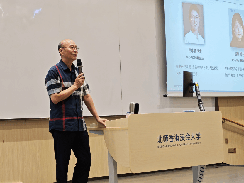 计算机科学系系主任苏伟峰教授简单介绍了往届AIDM学生在BNBU的收获和成就,希望新生们能够在新的一年里把握住机会,做一些更有意义的事情。