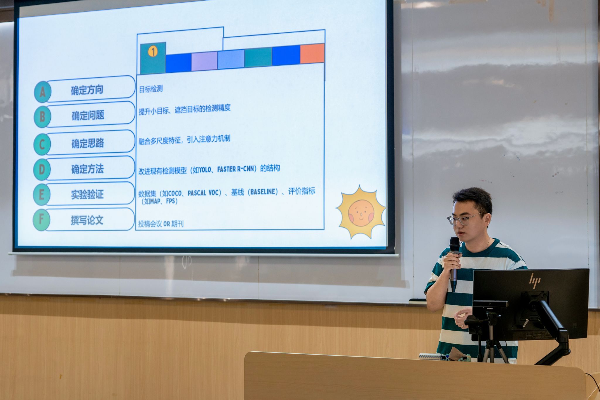 2024届毕业生、现北师香港浸会大学研究助理韩承序结合自身经历,分享了在AIDM的课程里如何更高效地学习、更好地完成课程任务,并强调了团队协作沟通、主动思考和自主学习的重要性。此外,他也提到了毕业后的就业方向,并建议有兴趣从事科研的同学提前与导师联系,积累经验。