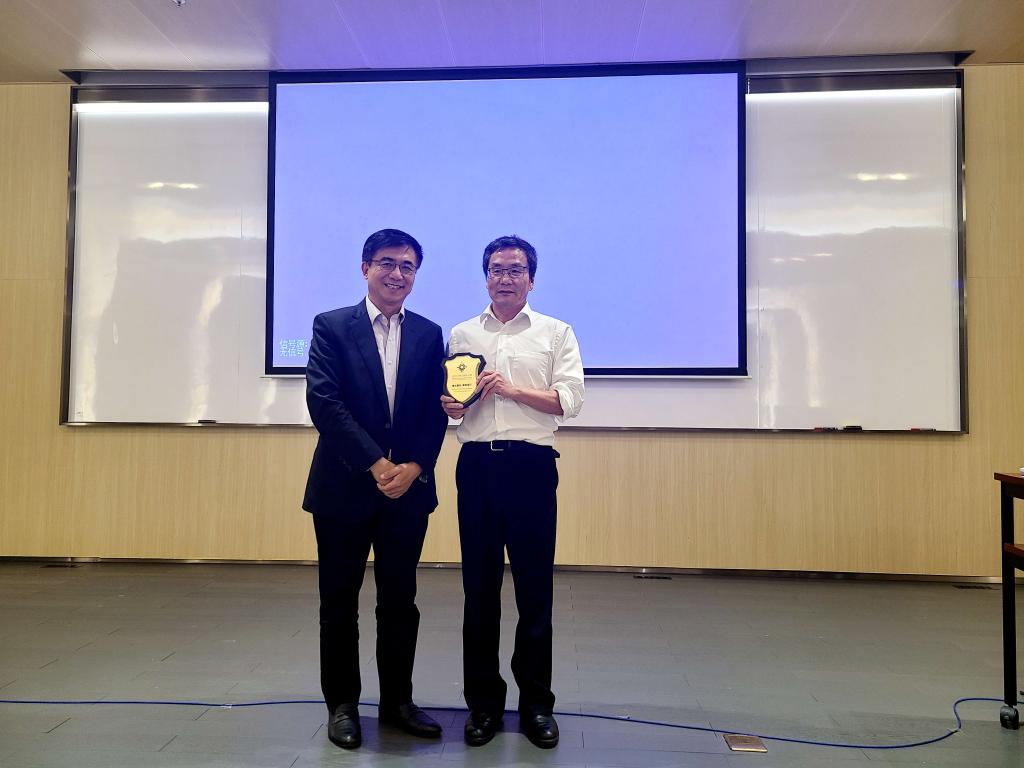 UIC校长汤涛教授为冯建峰教授(右)赠送纪念品