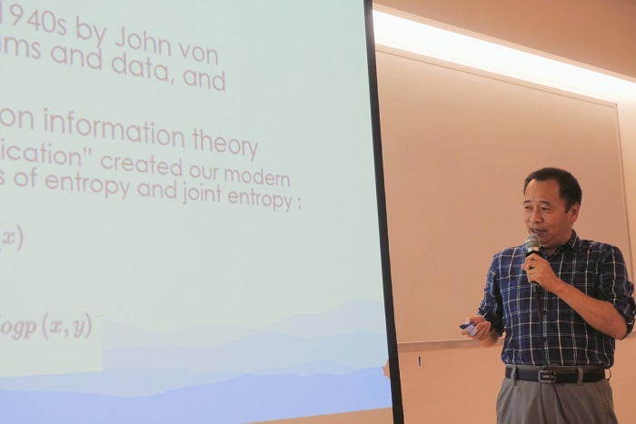 时红建教授则以“数学在工业时代有什么用处”为引子,列举现实生活中的许多例子,说明现代生活中如何利用数字化保存数据,数学是算法的基础;紧接着介绍了数字化自1948年以来的发展史;随后,时教授用图像处理、傅里叶变换、视频编码及图像恢复等实例,说明了这些操作背后都需要强大的数学理论作为基础。