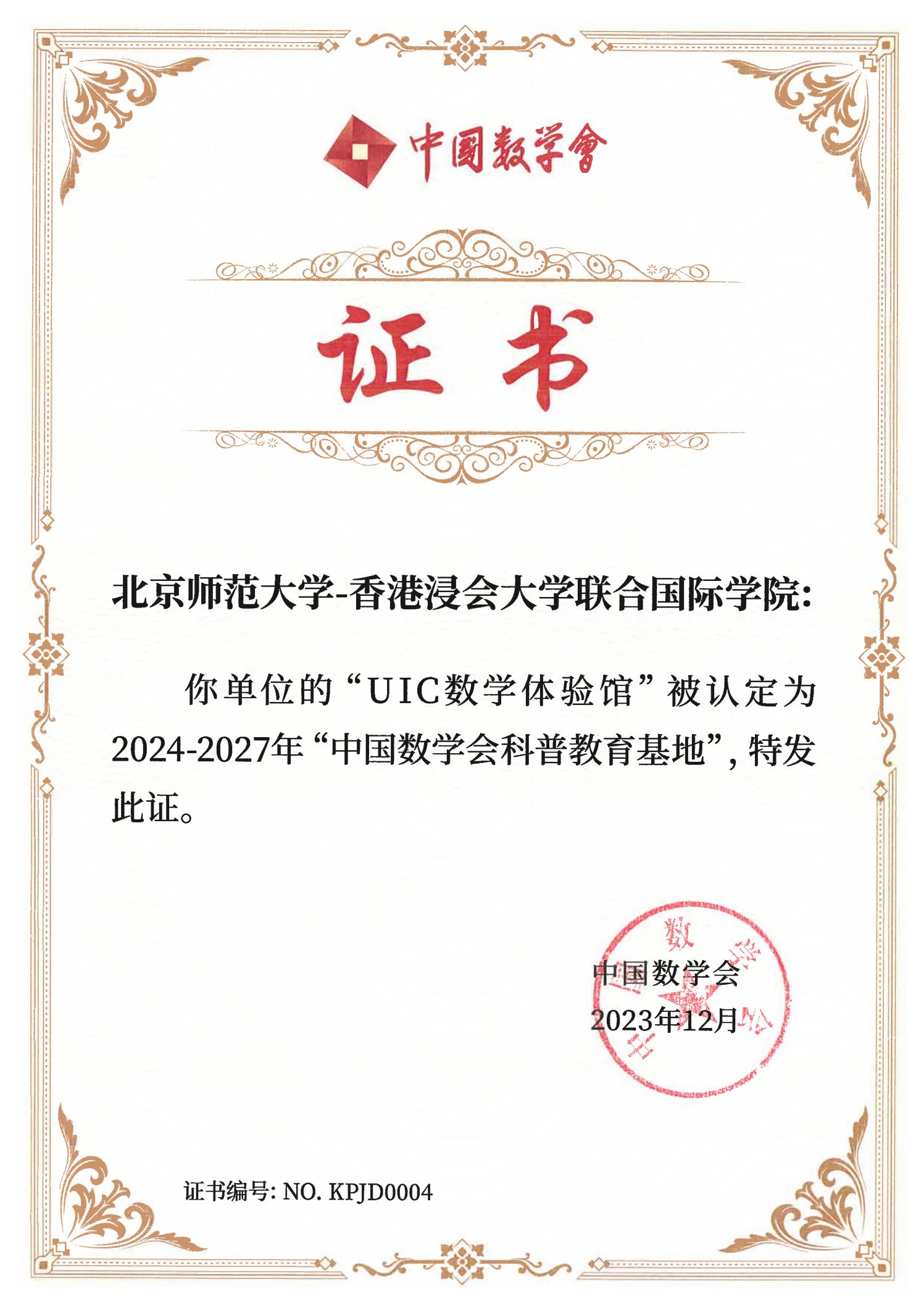 自2023年6月起,理工科技学院数学科学系协同创新中心着手申报“UIC数学体验馆”为“中国数学会科普教育基地”,经过不懈努力,在同年12月申报成功,这标志着UIC在普及和推广数学的道路上又迈出了坚实的一步。