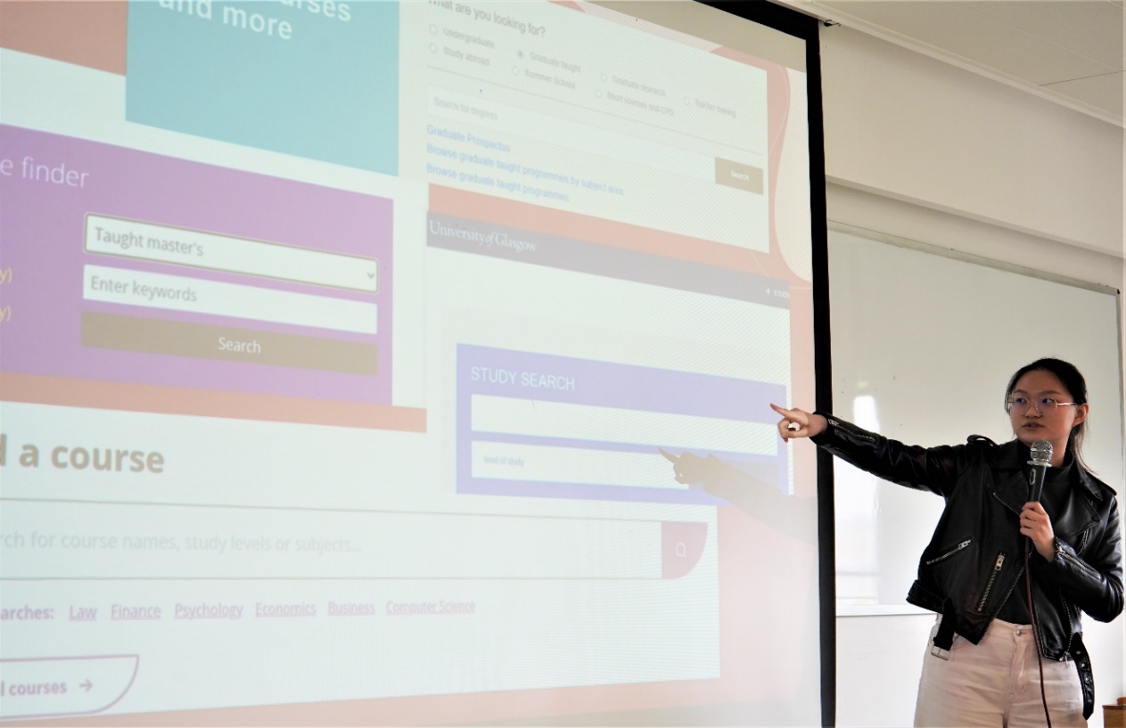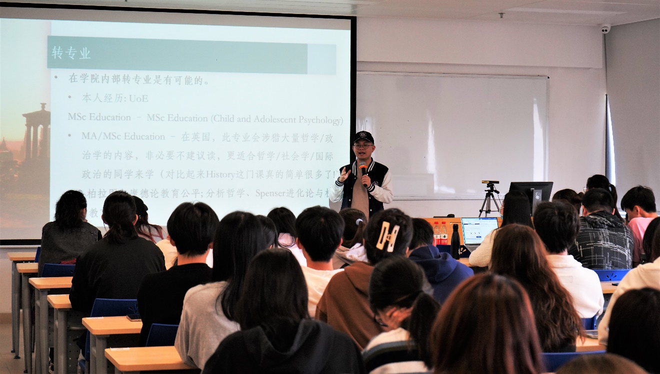 本科毕业于UIC会计专业的丁洋老师从个人经验出发,举例讲解了提高研究生申请文书“匹配”质量的小窍门,介绍了他在爱丁堡大学莫雷教育学院的硕士研究生就读体验。同时,他还勉励学生们申请应尽早准备“赶上第一轮”,勇于尝试和寻找自己感兴趣的院校和专业,并为之不断努力。