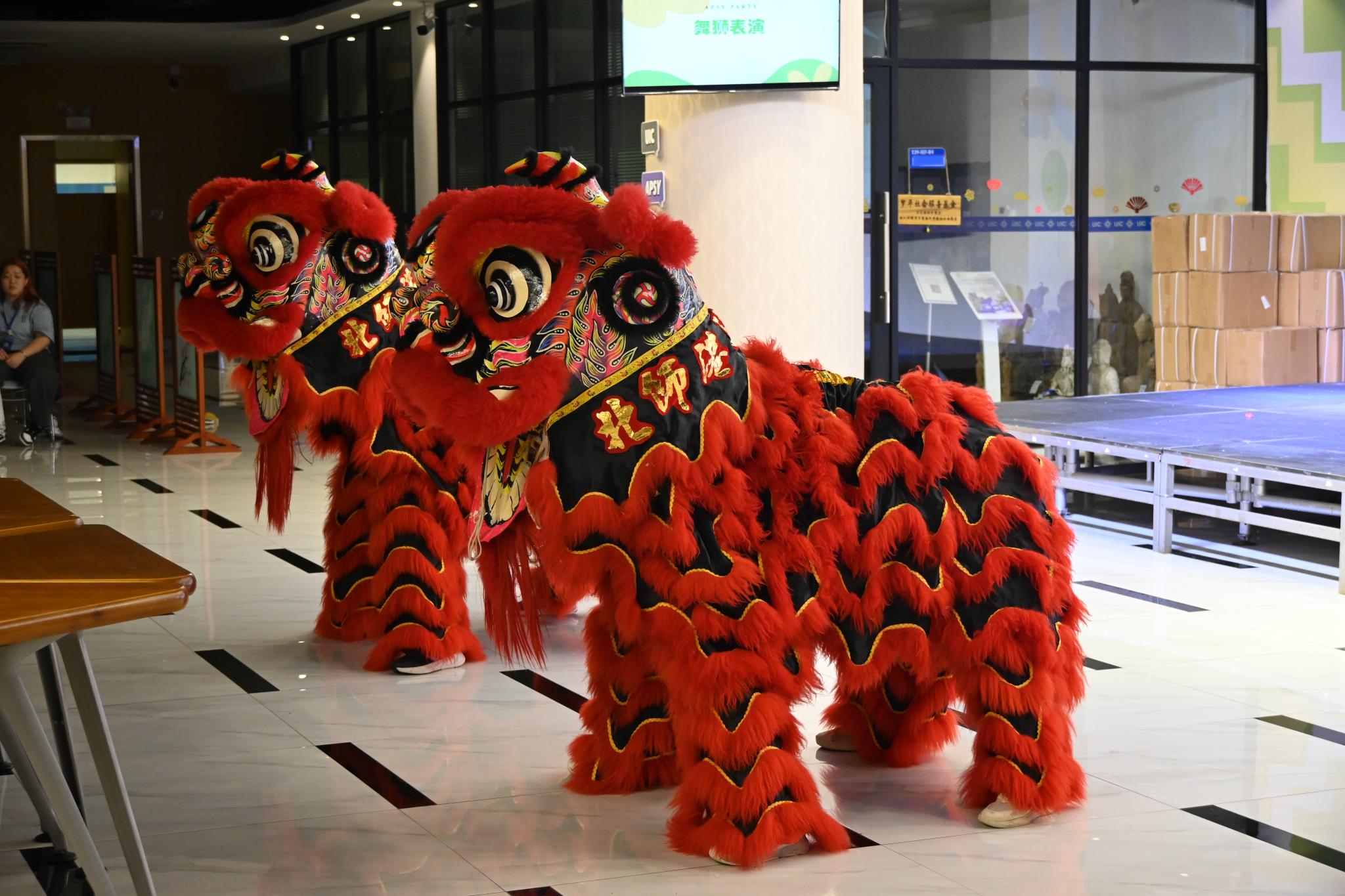 UIC龙狮队的加持将晚会的氛围推到最高点。我校龙狮队表演的舞狮气势磅礴,狮跃欢腾之势尽显中华传统文化之雄浑,为新生们传递了吉祥与祝福。