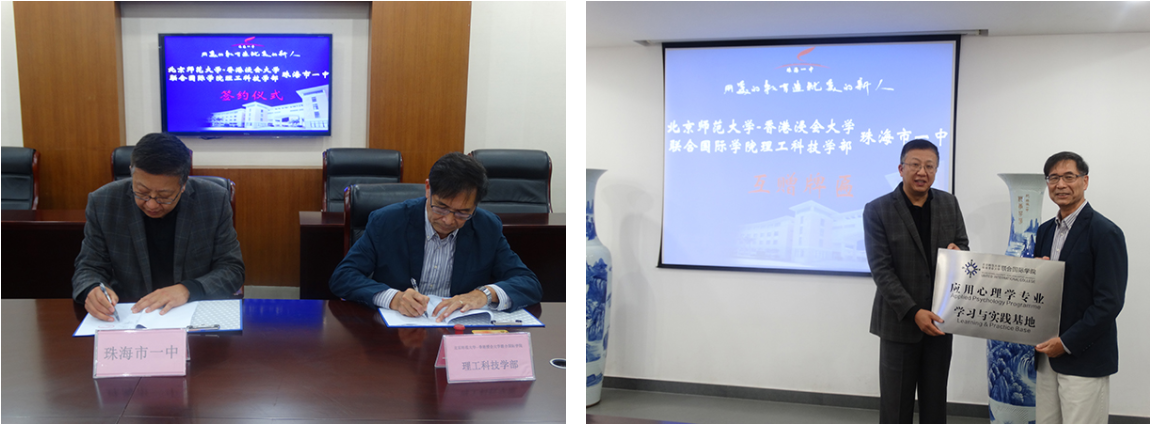 2017年3月30日,应用心理学专业与珠海市第一中学举行合作协议签约及互挂牌匾仪式,共同推进心理教育发展。