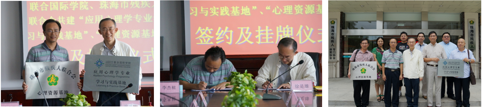 珠海市残疾人联合会于1989年4月由珠海市政府正式批准成立。是专门为残疾人提供社会福利和职业指导的职能部门和机构。2013年7月1日,BNBU应用心理学专业与珠海市残疾人联合会合作建立学习实践基地,为学生的进一步学习实践和研究合作提供机会。