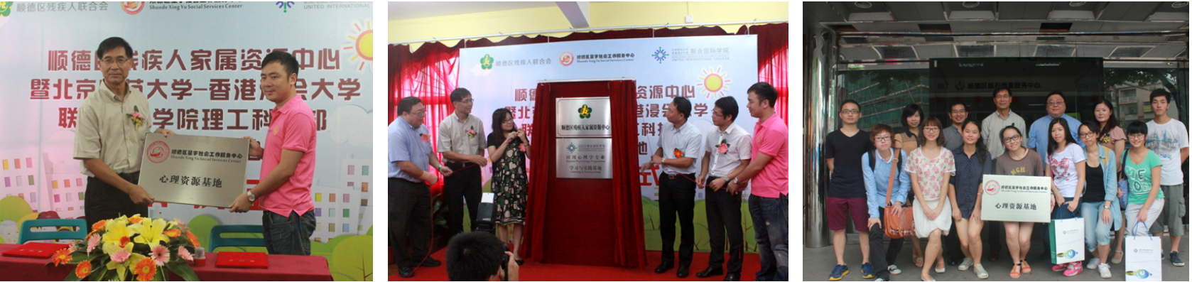 顺德星宇社会工作服务中心提供广泛的社会福利服务,包括对残疾人的照顾支持服务、复健服务、职业支持服务、社区老人服务、综合社区社会工作服务。2013年8月30日,BNBU应用心理专业与顺德星宇社会工作服务中心挂牌签约,合作建立学生学习实践基地,为学生实践、研究提供机会。