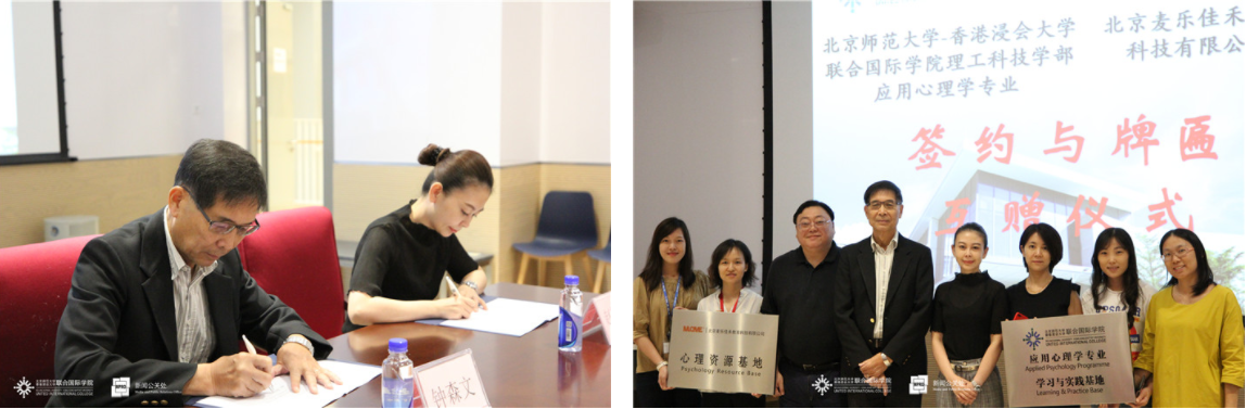 2018年10月10日,应用心理学专业与北京麦乐佳禾教育科技有限公司学习与实习基地合作协议签约仪式在BNBU举行,双方互挂“应用心理学专业学习与实践基地”和“心理资源基地”牌匾。