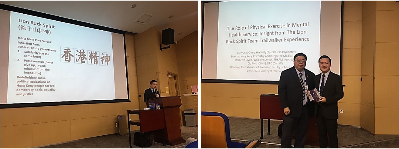 On April 19, 2018, Dr. Chung Hin Wong made a speech on"The Role of Physical Exercise in Mental Health Service: Insight from The Lion Rock Spirit Team Trail Walker Experience".