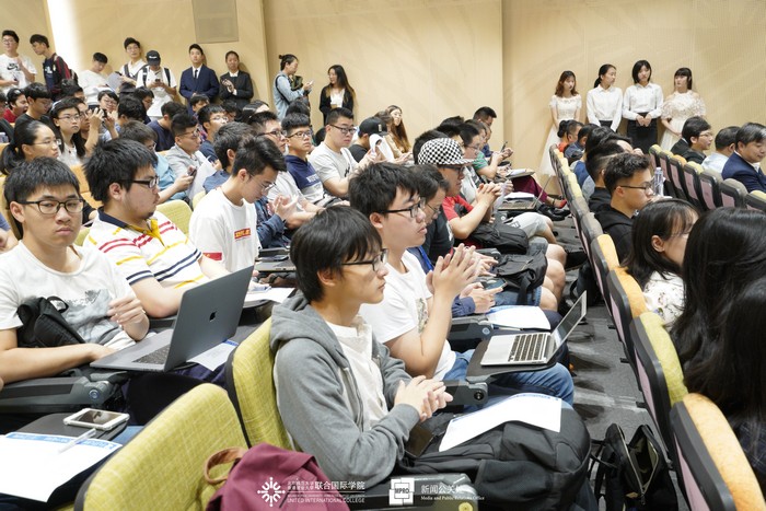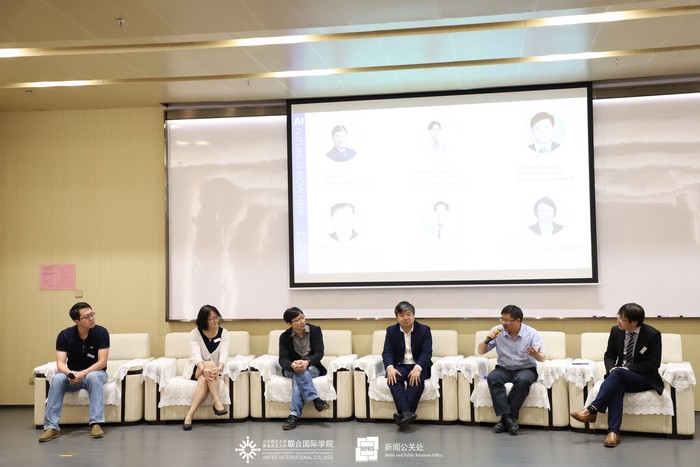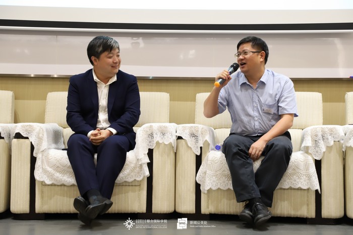 在讨论环节,三位业界大咖也与UIC计算机科学与技术专业课程主任苏伟峰教授、数据科学与大数据技术专业课程主任轩辕哲博士、计算机科学与技术专业张慧副教授相互交流。他们还讨论了几个有趣的问题:人工智能有感情吗?如果人工智能有感情会代替人类吗?如果人工智能取代人类,人类该去向何方?学者们以认真直接的态度表达着他们的见解,使同学们获益良多。