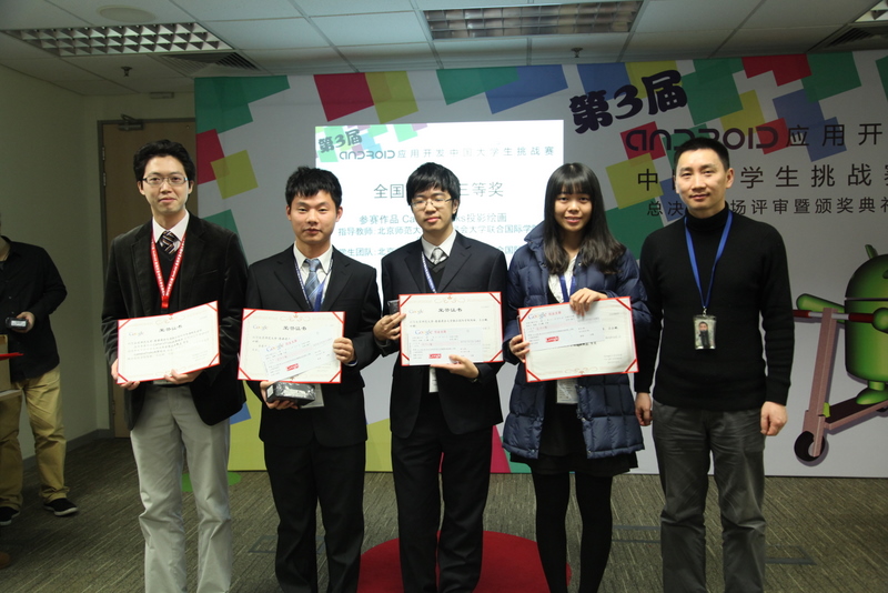 The efforts of the UIC instructor Dr. Louis Tang, Assistant Professor of Division of Science and Technology, and his students’ team CameraTricks in demonstrating their unique creativity won them the third prize in the national final onsite competition of the Google’s 2012 Android Student Developer Challenge, presented in the Google Beijing Office on 16 December 2012.