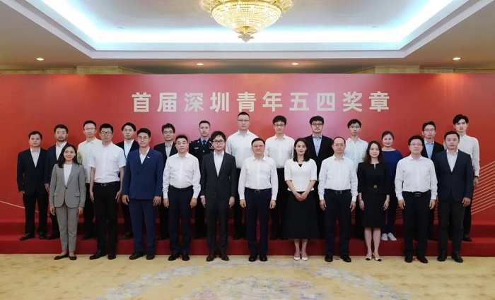 Dai Jianjin (first row, third from the left) at the awarding ceremony of the first Shenzhen Youth May Fourth Medal