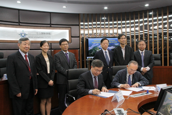 UIC Vice-President Prof Zee Sze-Yong and Chair of the Georgetown University Medical Centre Prof Ming Tan sign an MoU