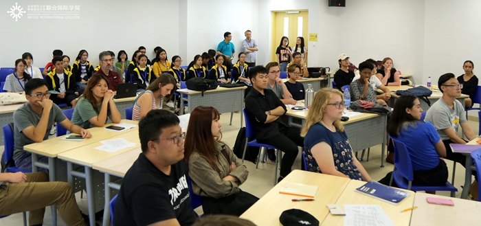 A group of Hong Kong middle school students who were being shown around UIC joined the Trinity and UIC students for one lecture