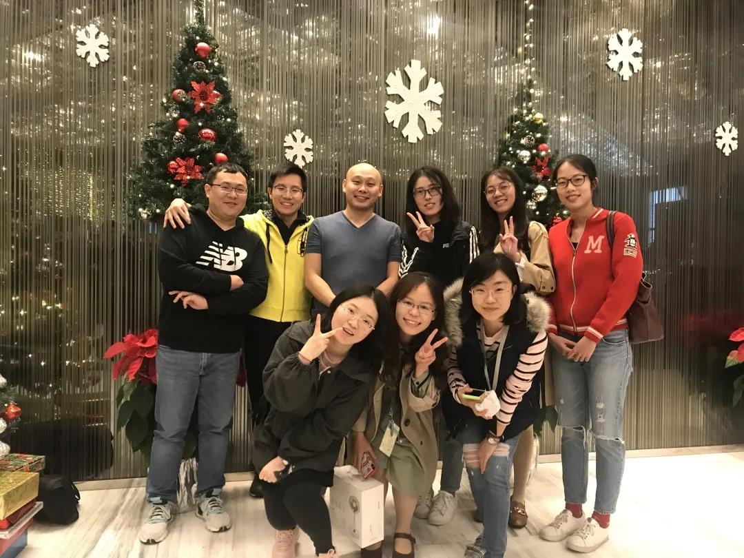 Yixin (first from left in the back row) with former teachers and classmates at the UIC alumni gathering