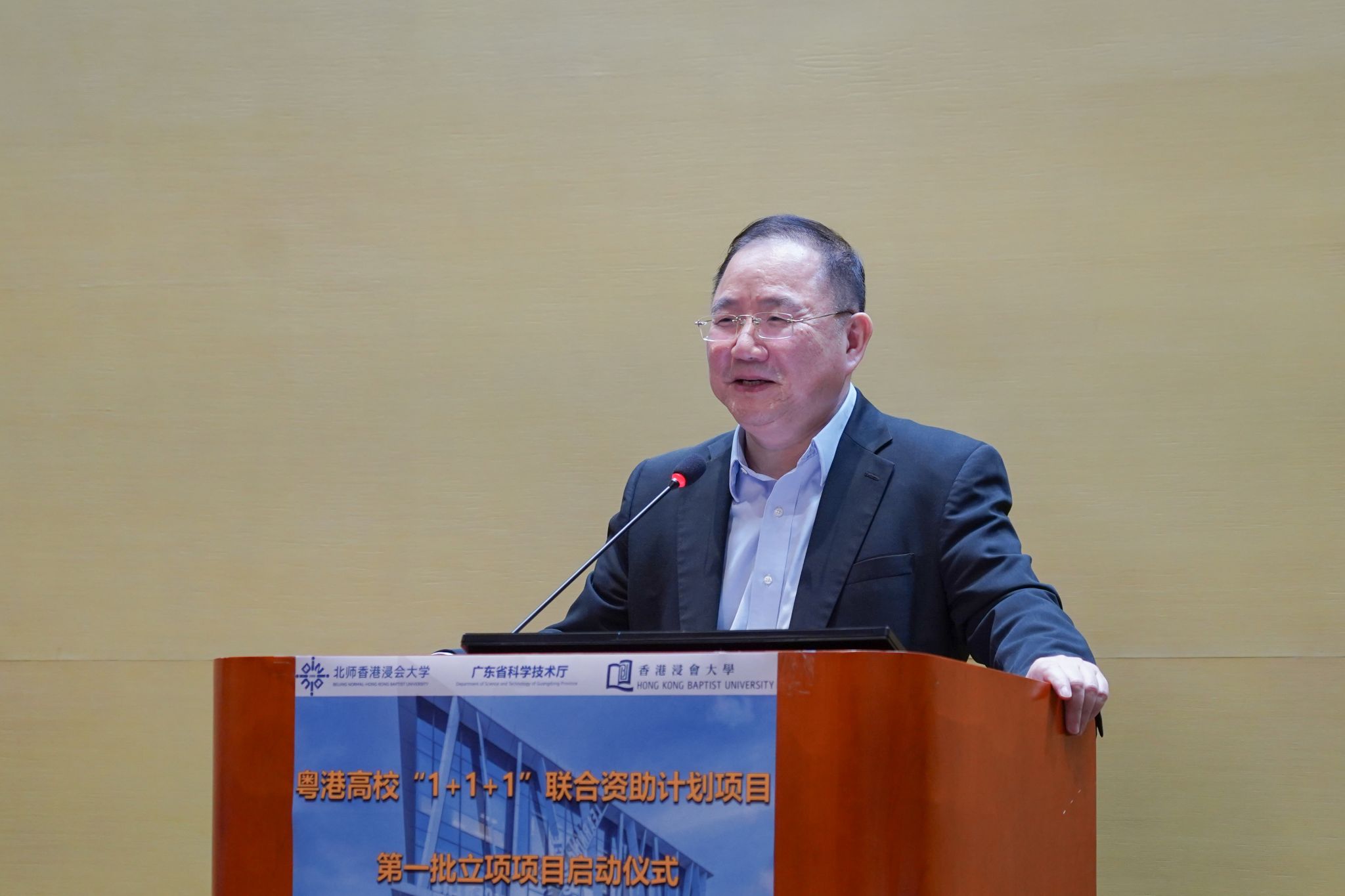 Notable attendees included Ms Yang Huifang, Director of the GDSTC Communication and Cooperation Division; Mr Dai Ge, Deputy Director of the Zhuhai Municipal Bureau of Science and Technology Innovation; Prof Chen Zhi, President of BNBU; Prof Patrick Chau, Provost of BNBU; Prof Li Jianhui, Academic Registrar of BNBU; Prof Alexander Wai, President and Vice-Chancellor of HKBU; Prof Liu Jiming, Associate Vice-President (Research Development) of HKBU; Prof Ricky Wong, Senior Presidential Advisor of HKBU; Christy Cheung, Director of HKBU's Research Office; and representatives from various Faculties, Schools, laboratories, and research departments.