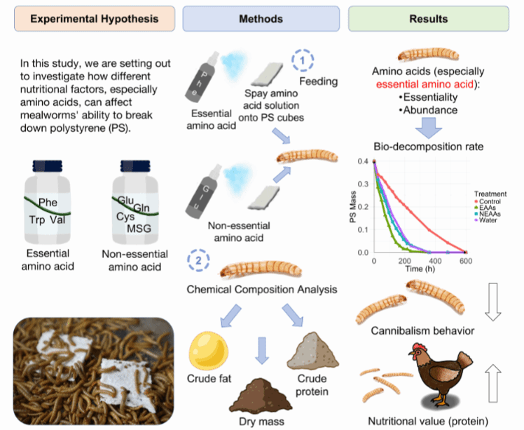 In environmental and energy research, undergraduate student Du Ruoxin co-authored the paper, "Enhancing Plastic Decomposition in Mealworms (Tenebrio Molitor): The Role of Nutritional Amino Acids and Water" in the journal, Advanced Energy and Sustainability Research, revealing that the abundance of essential amino acids in mealworms significantly affects their plastic degradation rate, providing insights into sustainable waste management. The paper's corresponding authors are Dr Danny Leong of BNBU and Dr Matthew Lui of Hong Kong Baptist University.