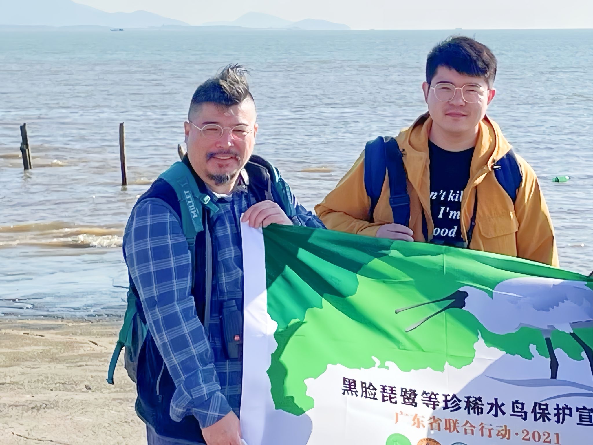 Wang with Prof Tsim Siutai conduct research on the Black-faced Spoonbill