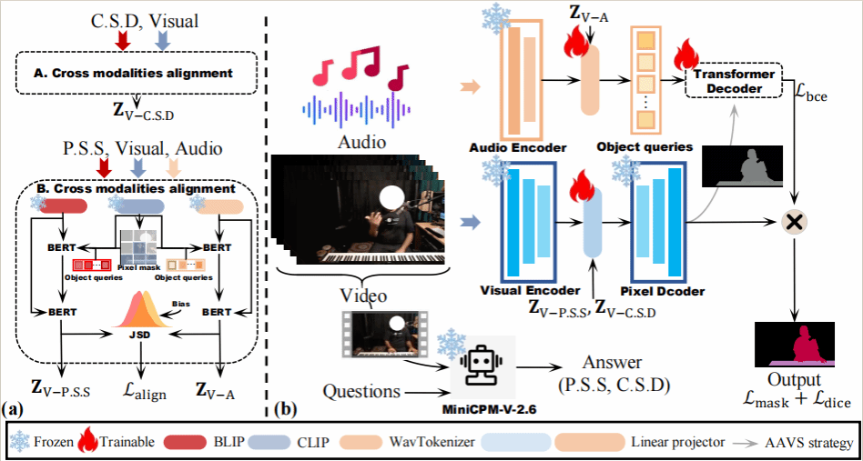 "Boosting Audio-Visual Segmentation via Triple-Modalities Alignment" is authored by Li Yujian under Dr Fan Wentao's supervision. This approach utilises a triple-modality alignment method (TM-align) to enhance audio-visual segmentation, aligning audio, video, and textual data to improve segmentation accuracy.