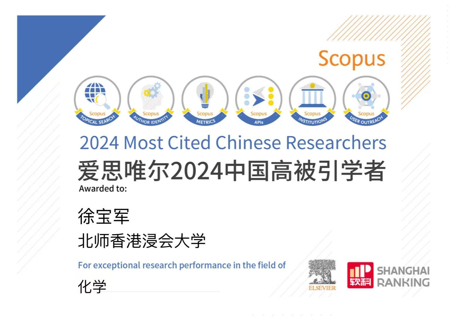 Two professors, Prof Fang Kai-Tai and Prof Xu Baojun, from the Faculty of Science and Technology (FST) at Beijing Normal-Hong Kong Baptist University (BNBU) have been named to Elsevier's 2024 Highly Cited Chinese Researchers list, which is released in April 2025.