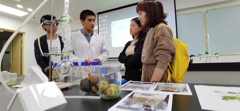 实验室中,大四同学介绍湿地植物海芒果以及与其有关的生物燃油研究项目