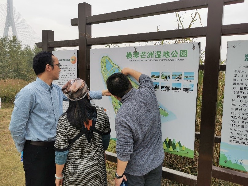 2021年1月21日,应珠海市横琴湿地公园管理方邀请,北师港浸大(UIC)环境科学课程主任詹肇泰博士前往横琴芒洲湿地公园进行实地调研,针对芒洲湿地公园的二次改造提供专业建议。共同参加调研的还有横琴新区生态管理科科长罗华兵、珠海市观鸟协会会长郭海兰等。