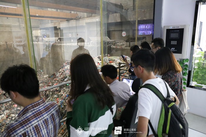 师生在参观该公司生活垃圾焚烧发电厂时了解到,生活垃圾转运到厂里后,需经过3-5天的发酵处理,并进行850℃焚烧,换热之后的尾气经过烟气净化系统达到国标排放,实现生活垃圾100%无害化处理。