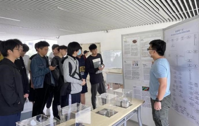 环境科学专业同学的研究成果展示,工作人员正进行耐心讲解