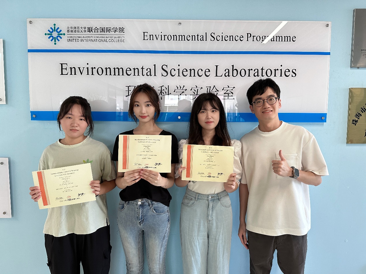 事实上,环境科学专业作为一门交叉学科,有广阔的研究和发展领域,学生可选择其中一个赛道自由驰骋。参加国际比赛是UIC“新•环科”加强跨学科尤其是数据学习的起点。除此之外,该专业21级黄佳怡和22级吴丹及计算机科学专业21级郑昌宇团队在环境科学专业助理教授梁志文博士的指导下,研制出“新型防虫材料”参加2024年第27届俄罗斯莫斯科“阿基米德”国际发明暨创新科技展并荣获金奖(详见:https://fst.bnbu.edu.cn/envs/info/1003/1833.htm)之后,于今年7月再次组队参加了2024年第七届“高创杯”广东高校科技成果转化路演大赛。该赛事由广东省教育厅主办,旨在推动高校科技成果的转化应用,并促进创新创业教育的发展。团队再次在梁志文博士的指导下,以创新创业项目“一种昆虫无法通过的天然脂类混合物及其应用”,在“成长赛道-节能环保、生物医药和新材料领域“成功以第10名入围。这是高校科技成果转化的一次演习,将会激励UIC环科相关工作的开展。