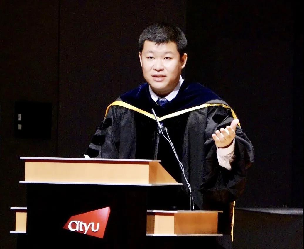 Guo Jiaxin delivering a speech at the graduation ceremony of City University of Hong Kong