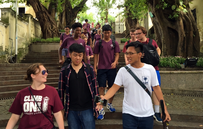 A group of Hong Kong middle school students who were being shown around UIC joined the Trinity and UIC students for one lecture
