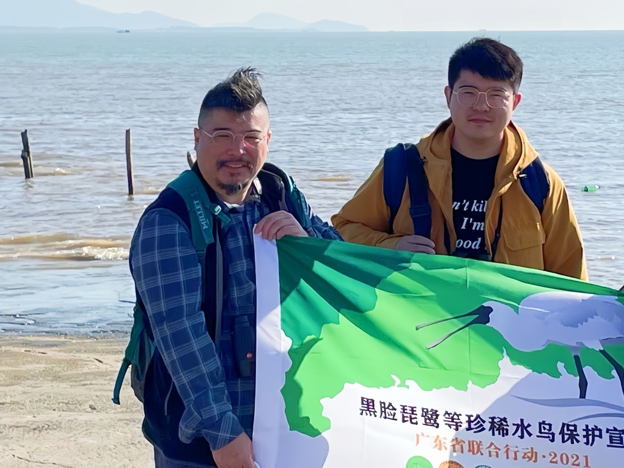 Wang Xiuzhi (right) and Dr. SiuTai TSIM Conducting Black-faced Spoonbill Surveys