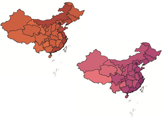 四维创新实验室(FPIL)成员与学生们一起研究国民幸福指数,项目根据已有评价体系思想,选取人均GDP,森林覆盖率等数据,首次运用切尔诺夫脸谱图在地图上直观表现中国各省国民幸福状况,并运用因子分析计算出各省国民幸福指数(National Happiness Index, NHI)。下图为项目中节选的图片