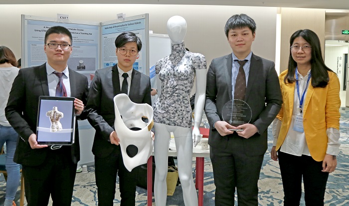 Overall Best Poster of the Division was awarded to CST students, Yang Jiayu, Hu Ruihua, Kuang Bingran and Liu Zongdong for their project titled ‘Mobile Body 3D Construction for Scoliosis Patients’. Yang Jiayu said they had the idea to do the project based off of the data provided by Southern Medical University that many children in mountainous areas suffer from scoliosis because of their habitual habits in early years. “However, due to inadequate medical facilities, they cannot be treated promptly. We had the idea to develop software that uses a mobile phone instead of an X-ray to measure scoliosis. Using a mobile phone camera to take a picture of the outside of the body, the software generates data and transmits it to the hospital. The resulting 3D model can be printed out in 3D. Then, by developing bracing, it can be corrected slowly as they grow.”