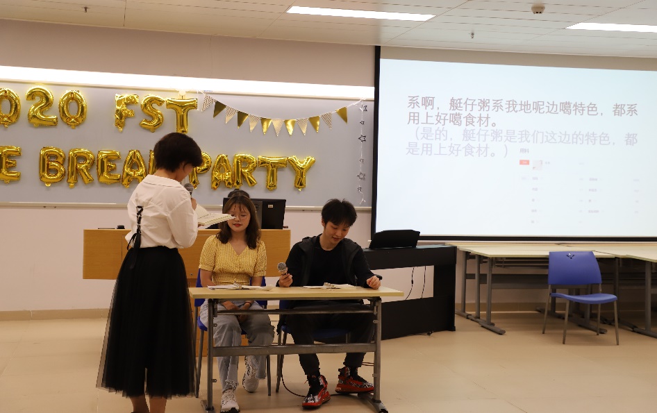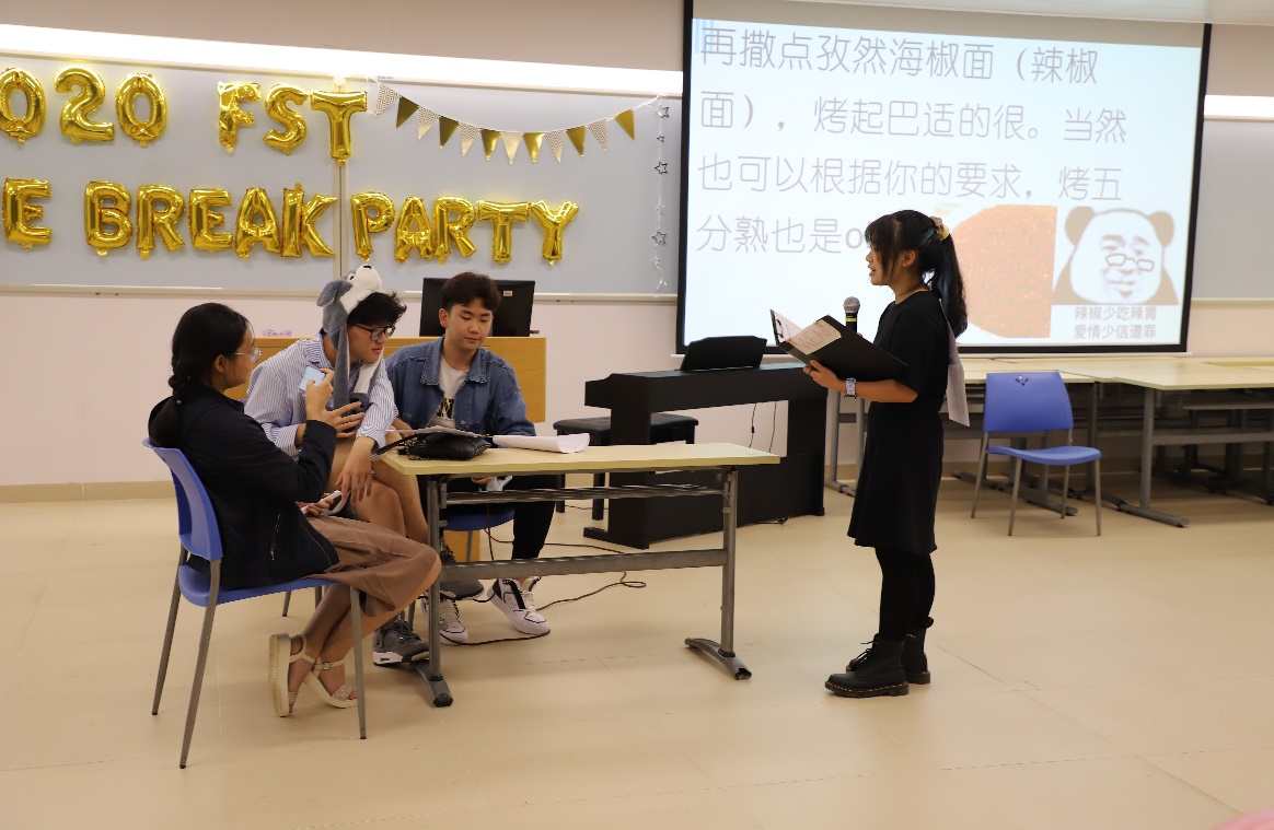 本届食品系的新生们来自全国各地,而MCP171的同学们,也将自己家乡的方言通过情景剧的形式向观众们进行了展示和教学。首先是几位来自广东的同学,向我们展示了如何用粤语进行点菜,并生动的展现出了因语言习惯不同而闹出的小笑话,引发了同学们的共鸣。