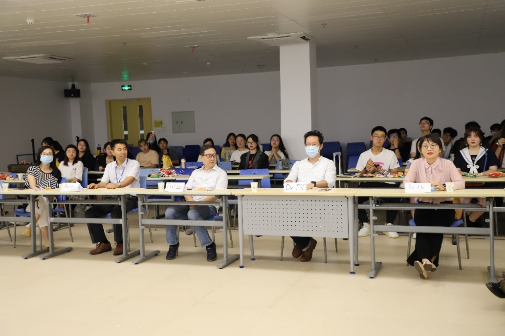 参加这次破冰晚会的嘉宾有理工科技学部副院长雷波教授(下图左三)、食品科学与工程专业课程主任及MCP168导师徐宝军教授(左二)、MCP170导师胡美怡助理教授(左一)、MCP171导师谢启荣助理教授(右二)和MCP169导师何文猛助理教授(右一)以及全体助理导师,与“00后”新生们共同欣赏了演出。