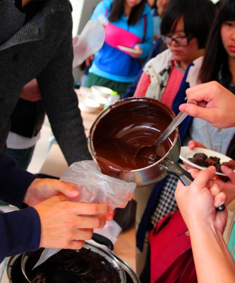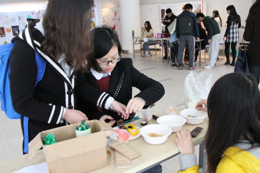3月11日,圆形展厅里弥漫着浓浓的巧克力味道,由 UIC食品科学与工程专业学会主办的 “第二届巧克力文化节”在这里举办。同学们不仅可以在现场了解到巧克力制作需要的原料和制作步骤,还能品尝自己制作的巧克力。