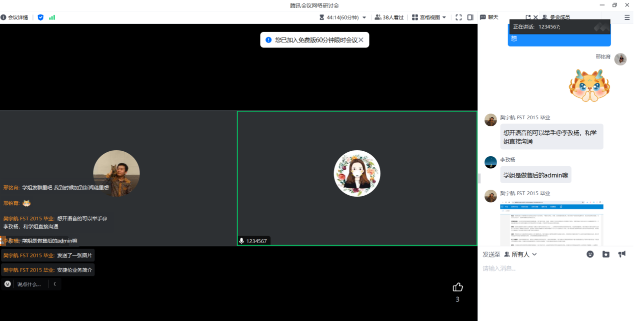 分享会的最后,吕楚姗和樊宇航鼓励同学们要对自己的能力有信心,发挥自己的优势所长,在感兴趣的领域不断探索。