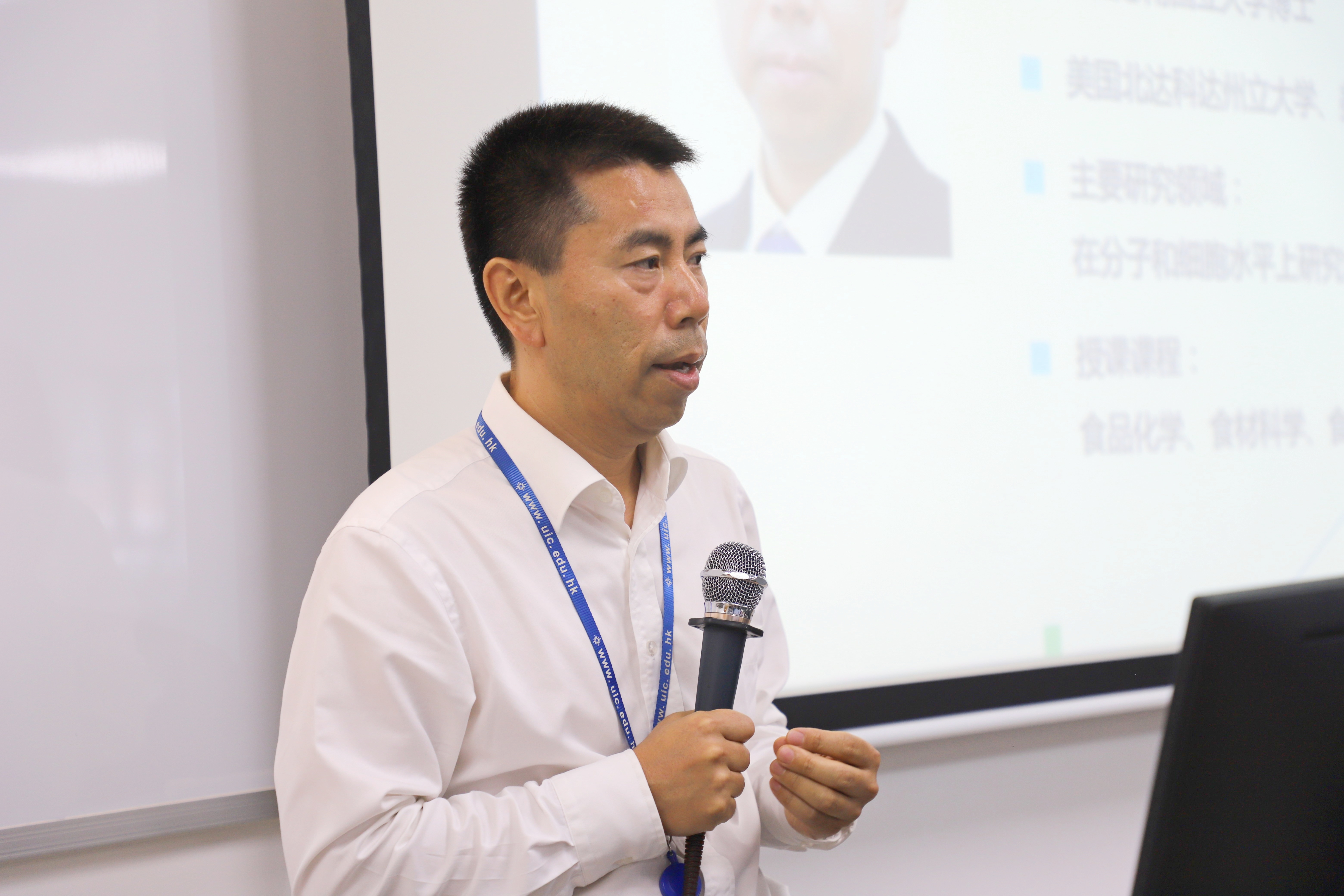 罗晓宇博士介绍了食品相关课程,并指出大学和高中是截然不同的学习阶段。他希望新生在UIC刻苦钻研专业知识的同时,也要充分利用UIC提供的各种机会和资源,培养兴趣爱好,开拓视野,度过充实的大学四年。