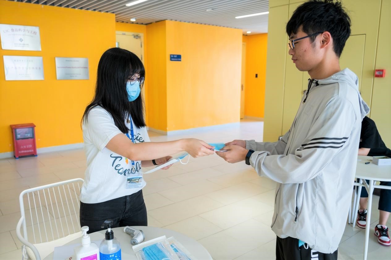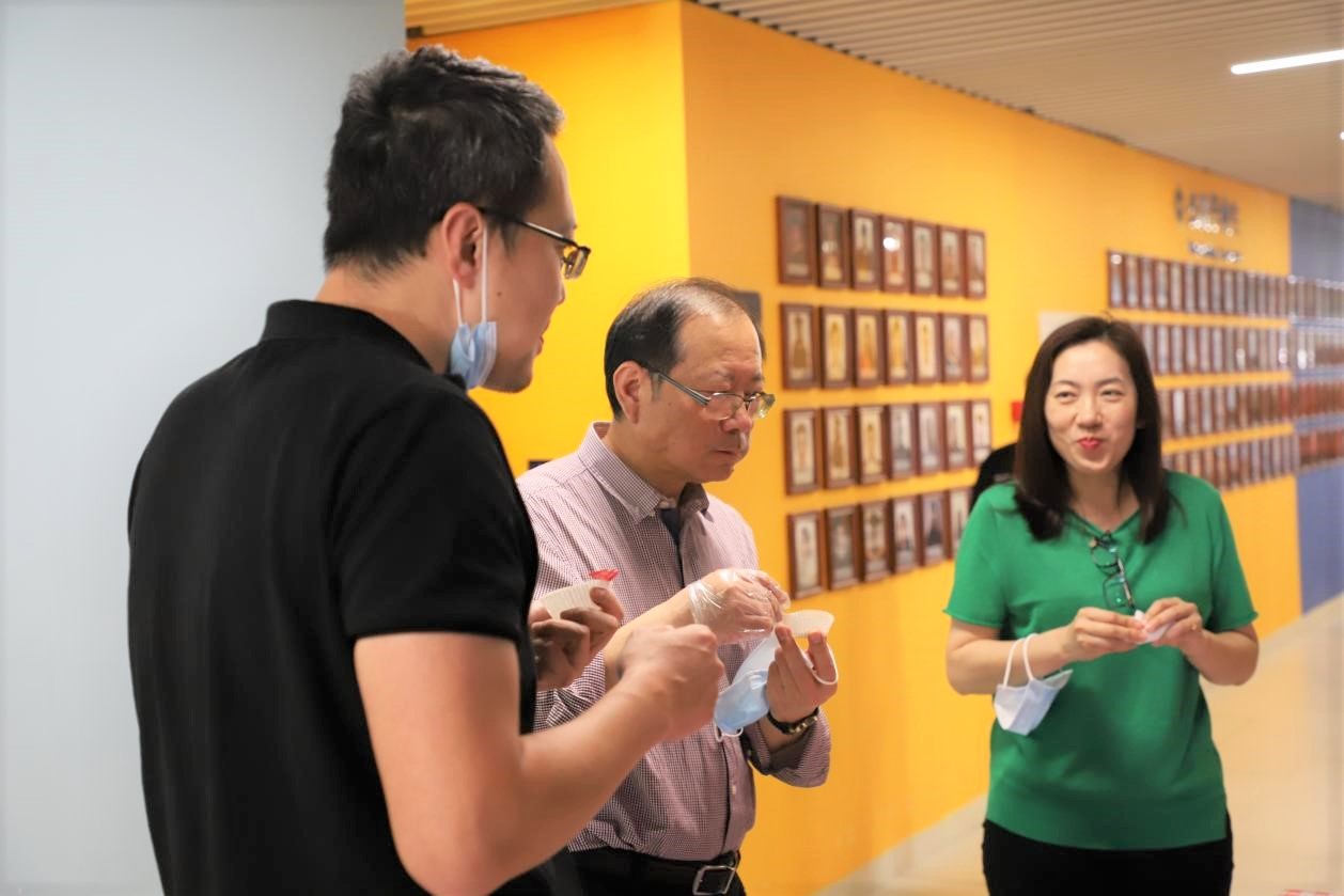 “请带好口罩,测量体温正常并登记后,排队入场,全程戴好口罩。”在创意食品嘉年华活动的入口,工作人员耐心引导参加此次活动的人员有序进场。为配合疫情防控,此次活动对入场人员进行了限流,仅邀请了理工科技学部院长潘建新教授和FST部分师生参加。限流没有减退每一位“研发者”的热情,从产品的初创、到一次次配料比例的调整、口感的提升、产品宣传介绍,直到活动当天每一份作品几近完美的呈现,都体现了他们的尽心尽力和每一份期待。