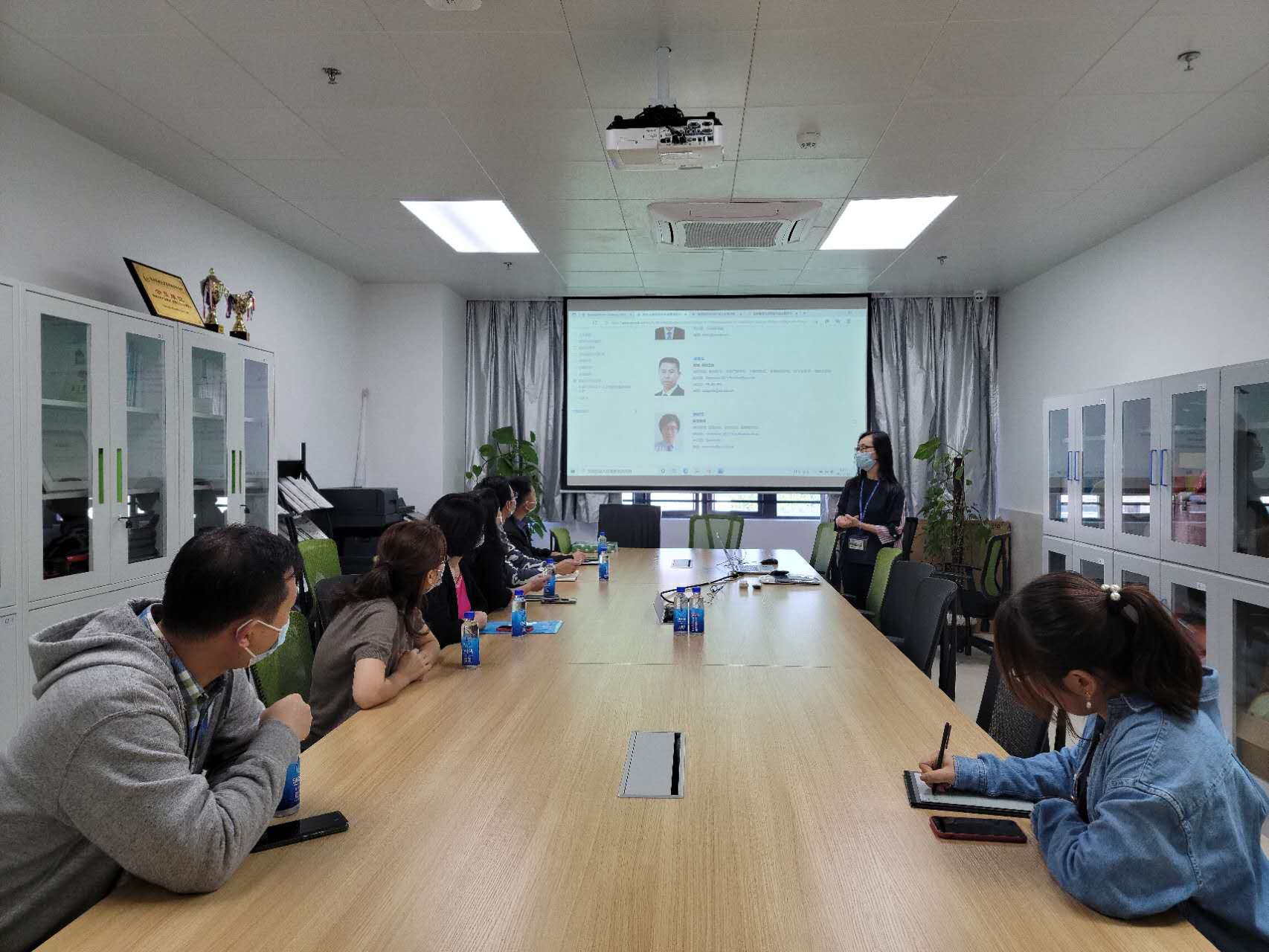 胡博士向专家们介绍了营养指导员培训项目的师资力量及食品科学与工程专业的信息,包括胡博士为英国注册营养师,何博士及张老师为中国注册营养师。胡博士表示北师港浸大的营养指导员培训已落实招生(详情可点击下图宣传单张查看),第一期培训预计2022年初开班。在会议的最后,与会专家对培训基地的设施、设备及教学团队表示满意,也对营养方向的教学培训表示看好,并会为培训工作做出支持。专家表示营养一环在将来会不断增加受到重视,培训工作非常重要。胡博士说感谢专家来访,提出意见及指导,总结营养指导员会是社区和基层工作中非常重要的一支力量,对于重点地区、重点人群不健康饮食结构的合理化调整,营养健康支持性环境的建设,营养健康食堂、餐厅的创建等方面都将发挥重要的作用。