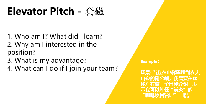 秦玮嘉给出的一些建议来帮助同学们能够更好地应对接踵而来的面试。她提到了自我介绍的三要素,案例研究以及需要掌握的重要技能。其中,她强烈推荐大家阅读麦肯锡的案例和出版的书,这对大家今后的工作有非常大帮助。