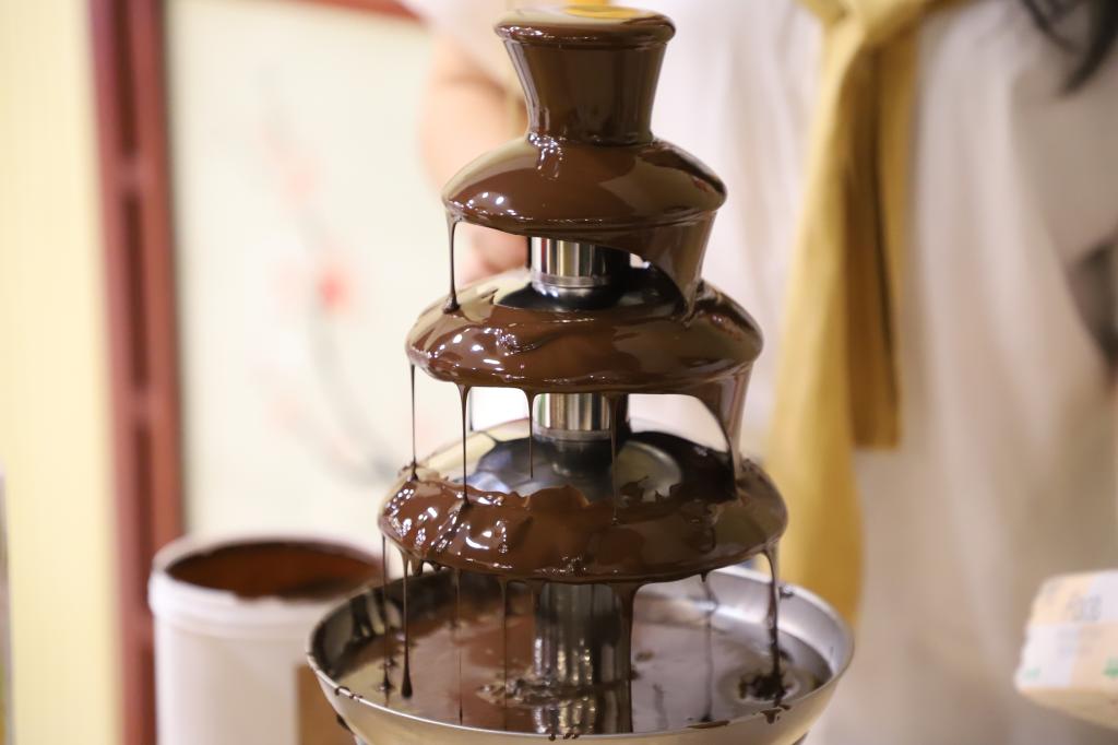 巧克力喷泉,也是这次活动最受欢迎的摊位之一。无论是在“Guess what you get”中获得的食材,还是在心动角获得的面包,都能来这里蘸巧克力酱,感受不同食材与巧克力碰撞带来的乐趣。