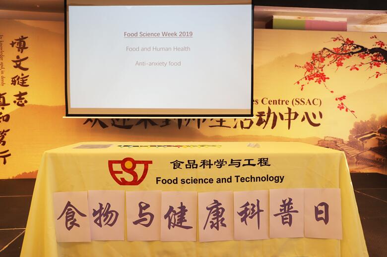 食品科学与工程专业举办了为期一周的食品周科普活动,2019年10月31日,关于减压食物的讲座以及活动如约踏来。通过食品科学与工程专业的助理教授谢启荣博士讲解抗压抗衰老食物、以及FST学生组织的海报讲解、互动小游戏和奖品鼓励等方式促进UIC师生对于抗压食品的认知以及理解。