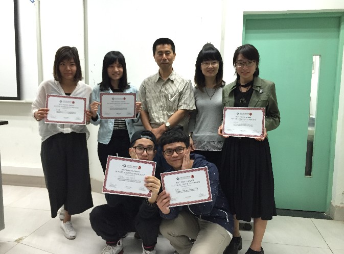 (左前:王康颖、贺清华,后排左起:李奕霏、李丽玮、徐宝军教授、胡美怡博士、杜悦明)