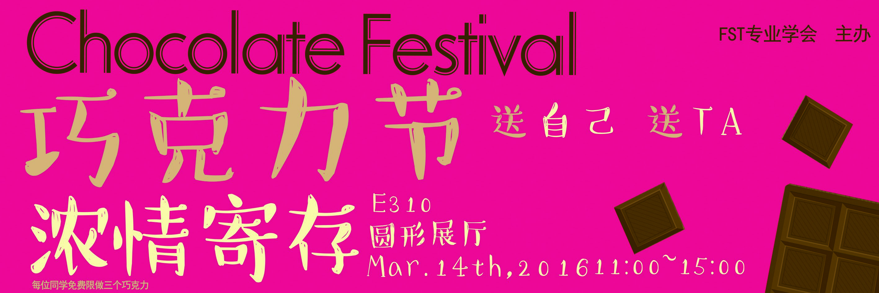 为向全校师生普及巧克力文化和相关知识,食品科学与工程专业学会于3月14日在学校圆形展厅举办一年一度的巧克力节。