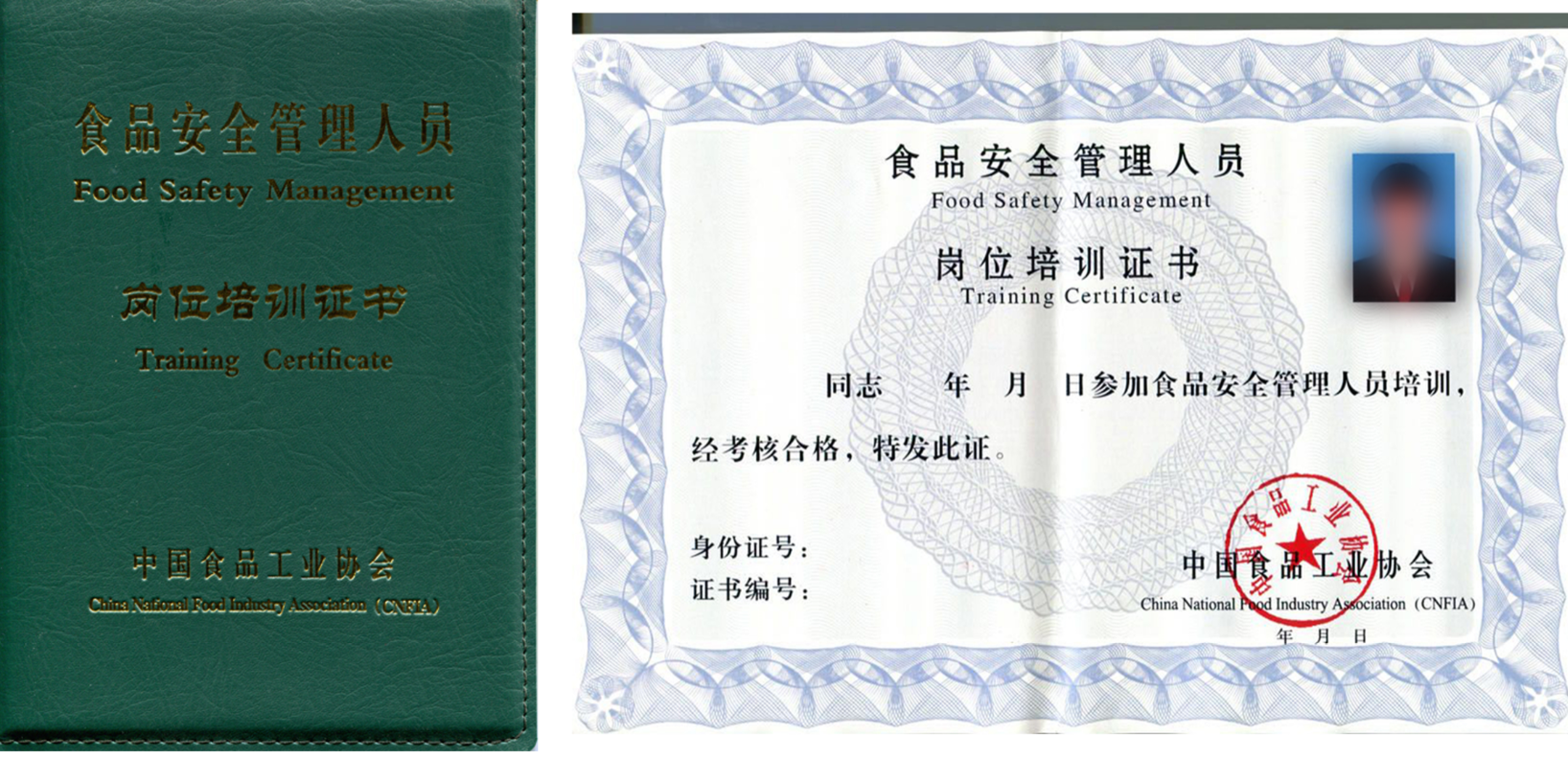 食 品 | 中专(或同等学历)毕业 | 10年工作经验 | 成绩合格,颁发相应证书 | |