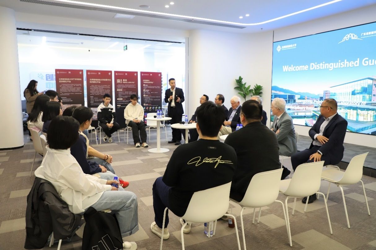 On 18 November 2025, Beijing Normal-Hong Kong Baptist University (BNBU) marked its 20th anniversary with a special guest dialogue hosted by the Guangdong Provincial Key Laboratory of Interdisciplinary Research and Application for Data Science (hereinafter “the Key Lab”). The event brought together three internationally renowned scientists—Professor Joachim Frank, recipient of the 2017 Nobel Prize in Chemistry; Professor Dan Shechtman, recipient of the 2011 Nobel Prize in Chemistry; and Professor Eric Westhof, member of both the French Academy of Sciences and the German National Academy of Sciences—to engage in an in-depth conversation with 13 student representatives from the Department of Life Sciences.
