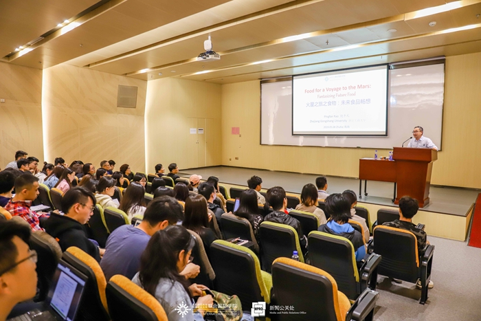 The Division of Science and Technology (DST) held a lecture called ’Food for a Voyage to the Mars: Fantasizing Future Food’ by the Vice President of the Chinese Institute of Food Science and Technology (CIFST) Professor Rao Pingfan on 8 May. The guests were Dean of DST Professor Stephen Chung, Food Science and Technology (FST) Professor Xu Baojun, Environmental Science (ENVS) Professor Daniel Ruan, Director of General Education Office (GEO) Professor Mildred Yang, and GEO Professor Sookja Kim Chung.