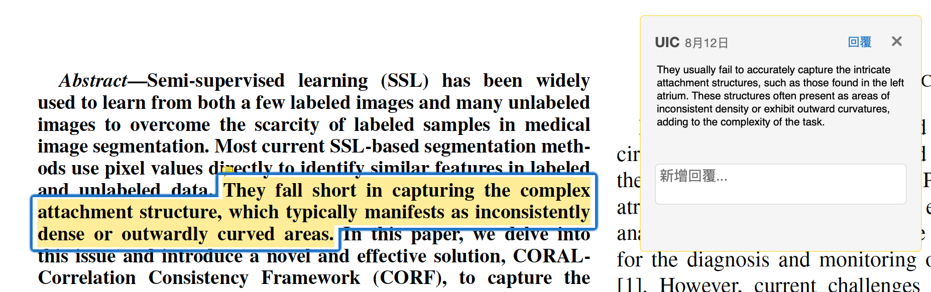 近日,UIC理工科技学院计算机科学系以2023级本科生李欣泽为第一作者撰写的论文 “Leveraging CORAL-Correlation Consistency Network for Semi-Supervised Left Atrium MRI Segmentation”在苏伟峰教授等导师的指导下,成功被生物信息学与生物医学领域旗舰会议IEEE International Conference on Bioinformatics and Biomedicine (BIBM 2024)收录为短文(Short Paper)并作口头报告(Oral Presentation)。