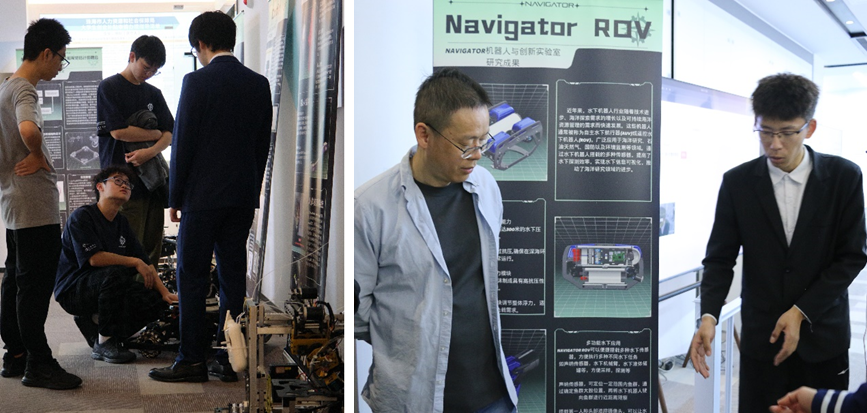 活动现场,Navigator机器人团队展示了多款创新机器人和无人系统,包括工程机器人通过6自由度机械臂与逆运动学算法提高抓取精度,轮腿机器人实现复杂运动与精确控制,以及智能水下机器人Navigator ROV结合AI执行复杂任务等。这些成果充分展示了团队在机器人技术领域的最新进展。